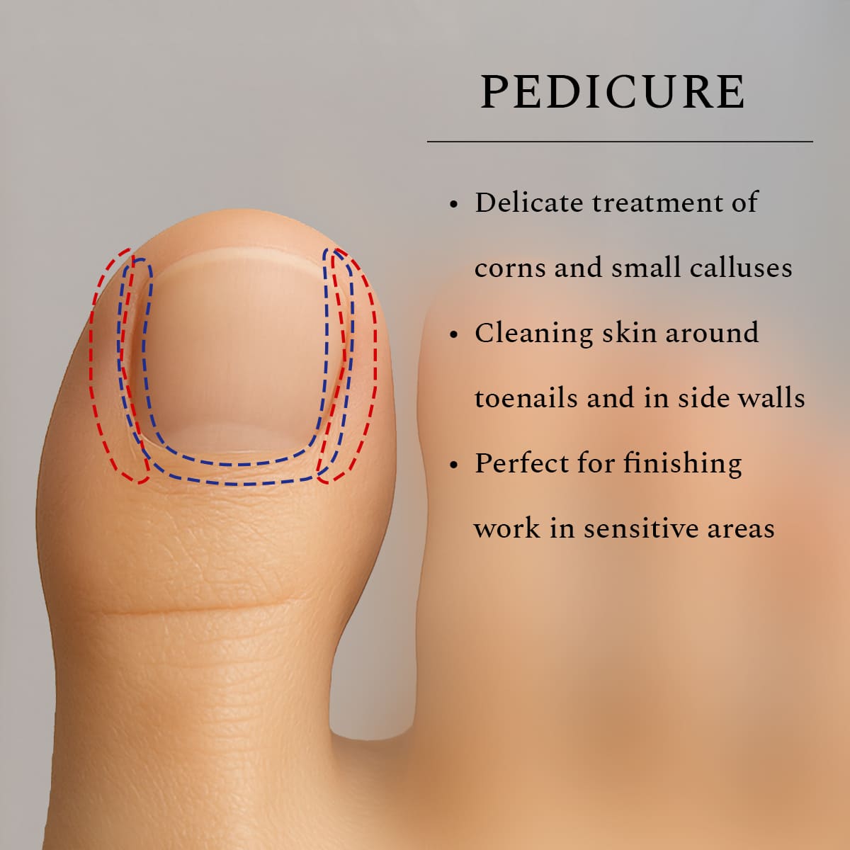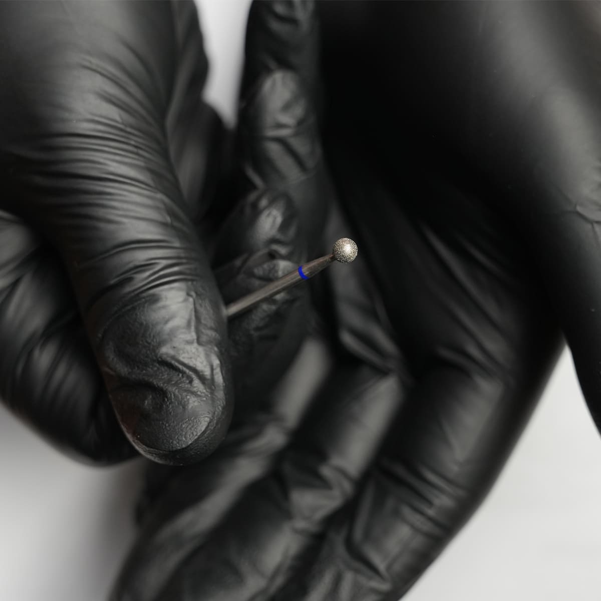 This medium-grit diamond ball bit is designed for precise cuticle work, cleaning nail folds, and treating delicate areas during manicure and pedicure procedures. Its 3 mm rounded shape ensures gentle contact with the skin, making it perfect for lifting and removing cuticles, smoothing rough edges, and finishing detailed work without causing discomfort.