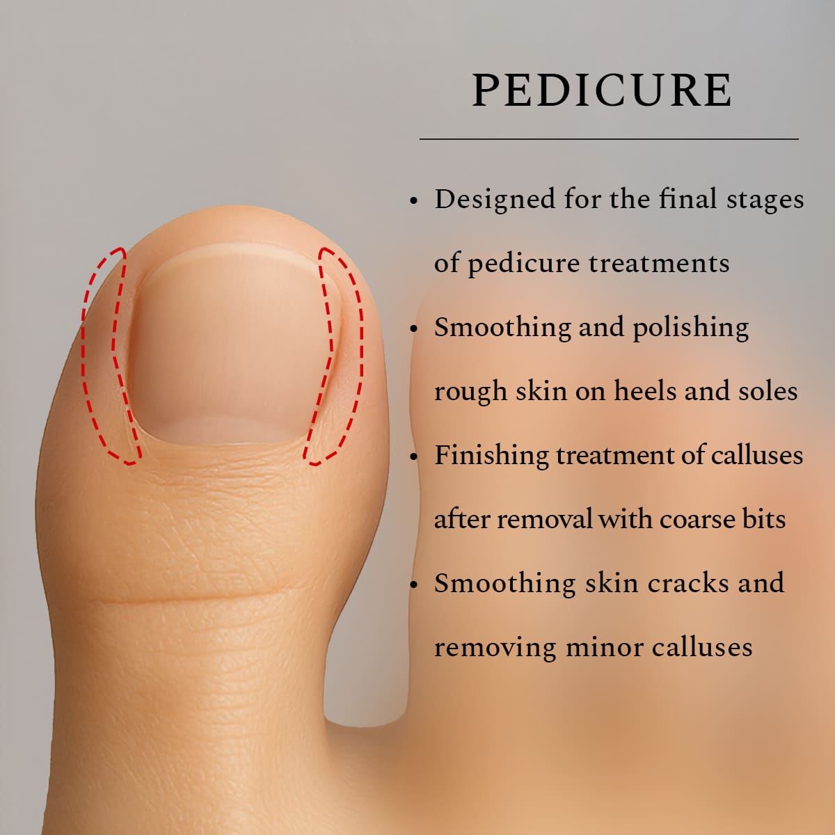 Tato silikonová frézka „kužel“ s hrubou zrnitostí a průměrem 6 mm je určena k broušení, leštění a finální úpravě umělých materiálů při manikúře i pedikúře. Její zúžený tvar zajišťuje plný kontakt s povrchem, což ji činí ideální pro dokončování tvrdých povlaků bez nadměrného zahřívání.