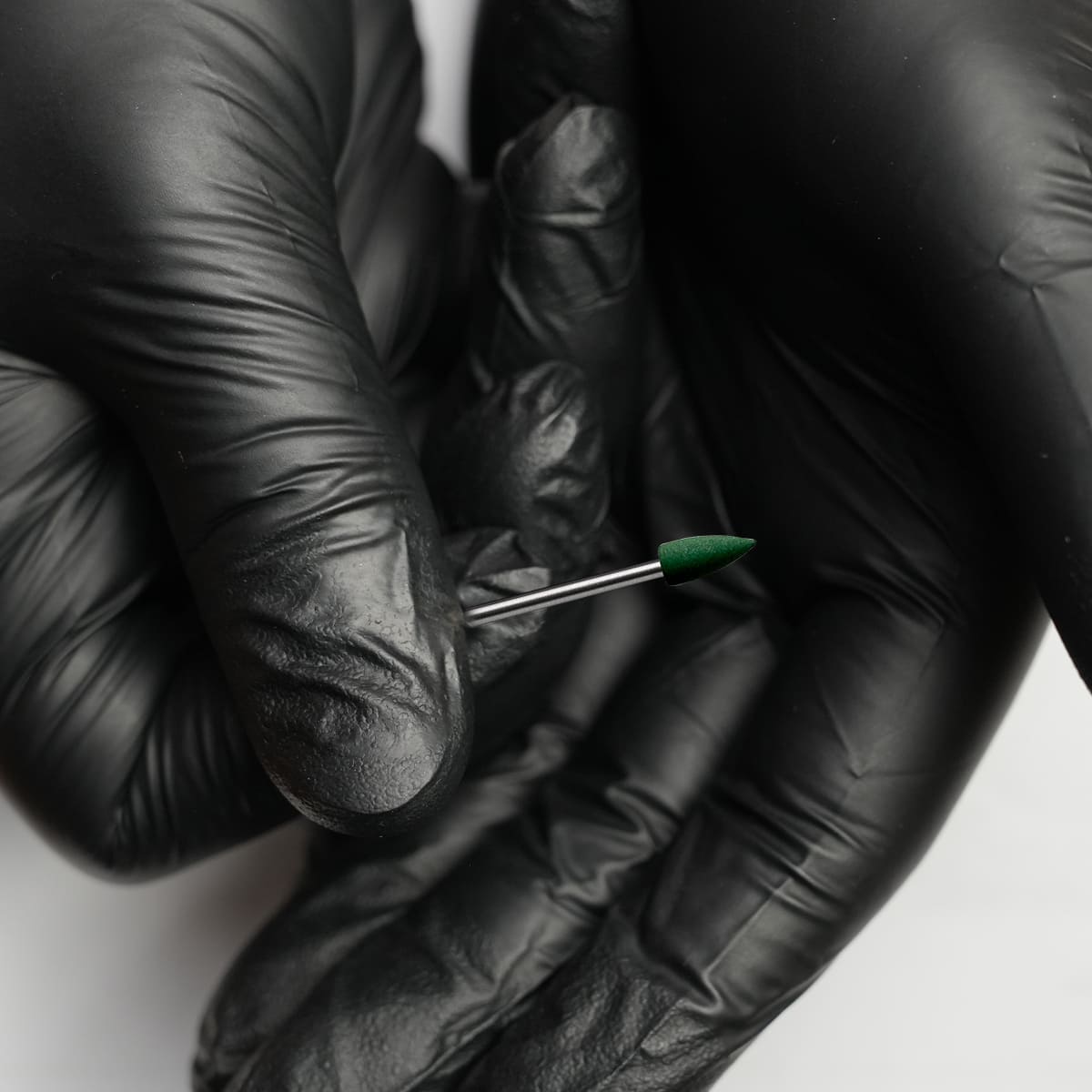 This medium-grit silicone cone bit is designed for polishing, smoothing, and finishing natural nails and skin during manicure and pedicure. The 4 mm tapered cone shape ensures precise control in small areas, giving a natural shine and silky smooth finish without aggressive abrasion.